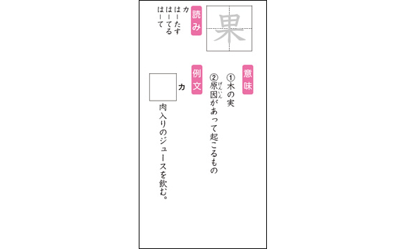 漢字の意味に合わせた例文をのせているので、文の中での使い方を確認しましょう。