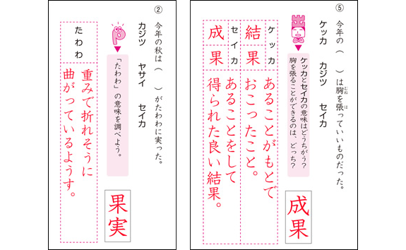 ここでは漢字のさまざまな使い方を学び、言葉の数を雪だるま式に増やしていきます。