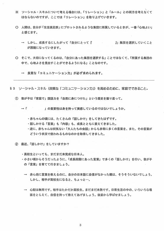 保護者向けのそのレジュメでは、次にソーシャルスキルのお話を差し上げています。