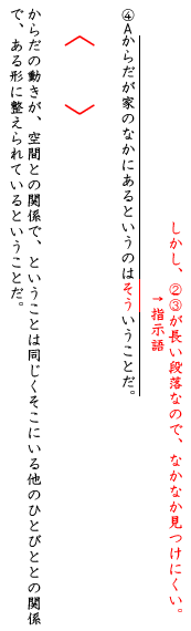 「からだが家のなかにあるということはそういうことだ」とある以上、前に指示語が来ないといけないけど、「そういうこと」って言われても、第2段落、第3段落、どちらもめちゃめちゃ長いよね。