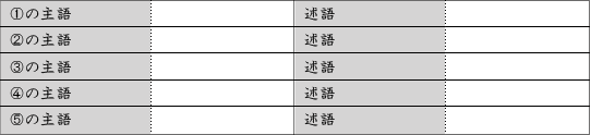 イコールの関係なので、選択肢の①②③④⑤ごとに論理的にしたい。短くスッキリさせるために、こういうふうに①②③④⑤って書いて、主語・述語を書き出してごらん。