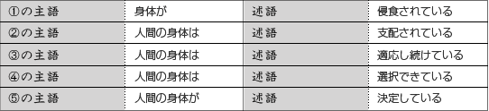 主語のところ、どうやら全部「身体」が入りそうだね。