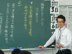 このように独自の例題を挙げ、記述問題の答案作成に必要とされる技術を細分化して見せることで、今取り組んでいることが実際の解答の際どう活かされるかを生徒にきちんと意識させた後、北村先生は論理エンジンOS1レベル7の演習に入っていきました。