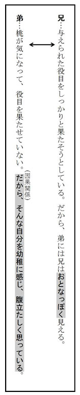 設問では傍線部における弟の心情が問われています。では、弟の心情を見てみましょう。